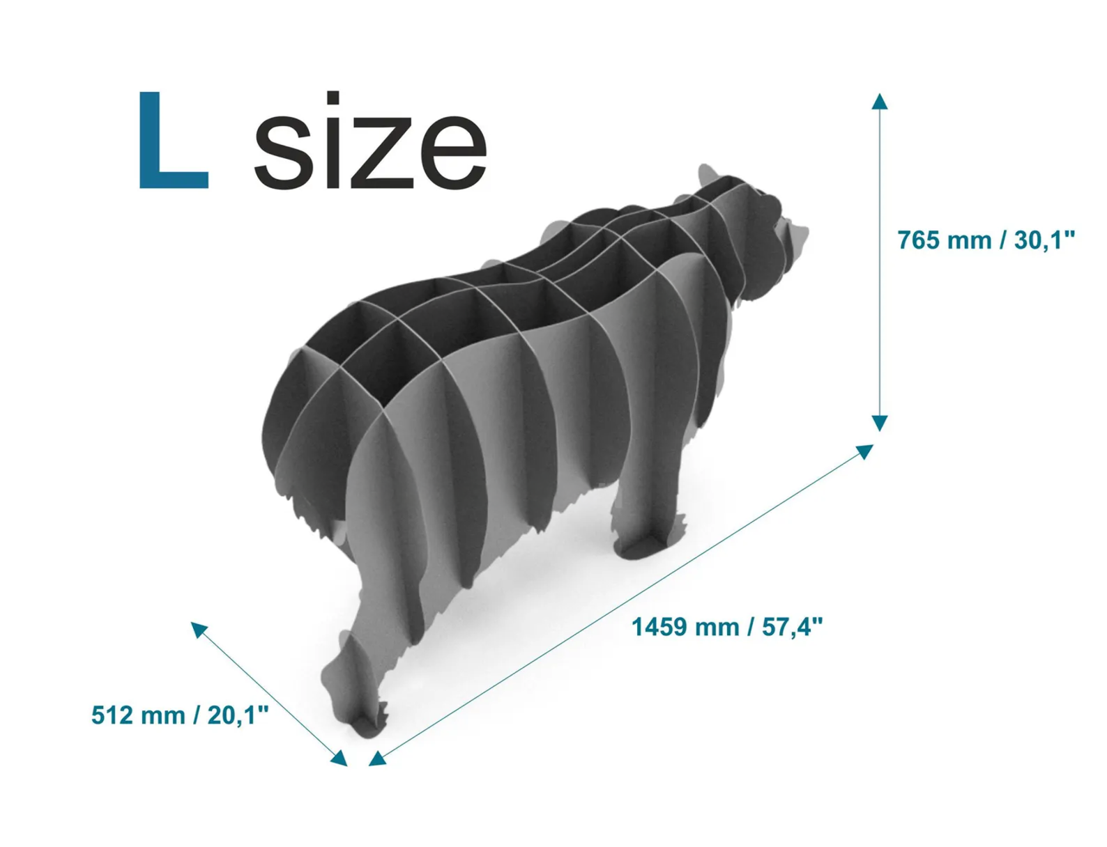 Our metal bear artwork measures at a lifelike size of (765mm x 1459mm x 512mm).