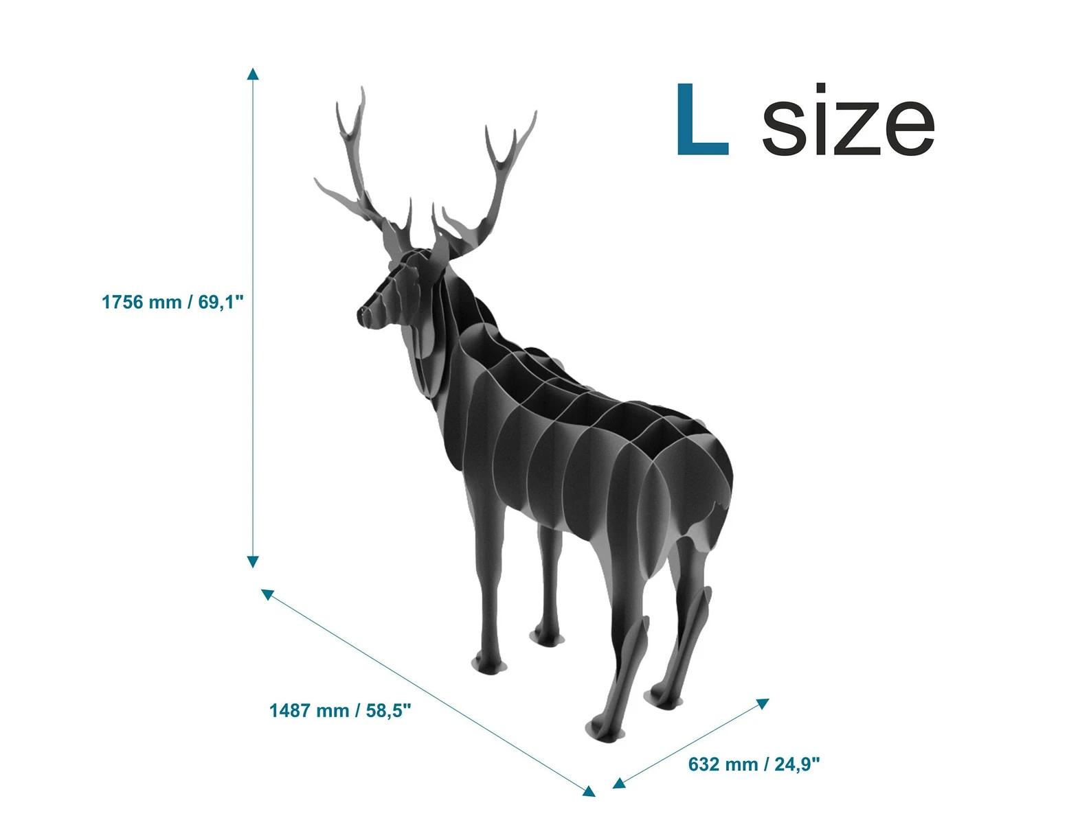 Our Doe metal artwork also measures at a lifelike size ( 1411mm x 555mm x 1497mm)